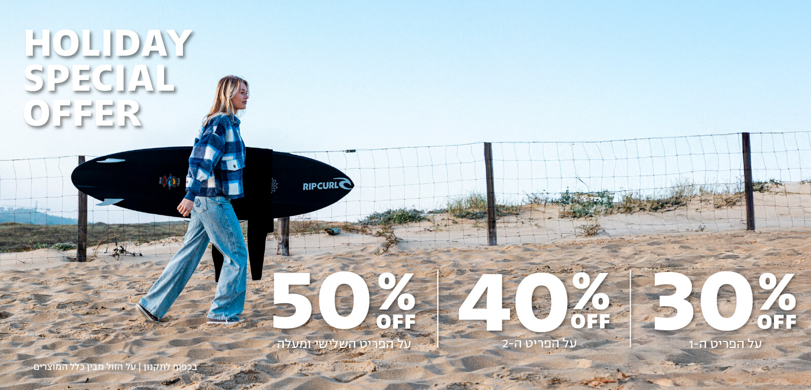 30% על הפריט הראשון 40% על השני 50% על השלישי ומעלה